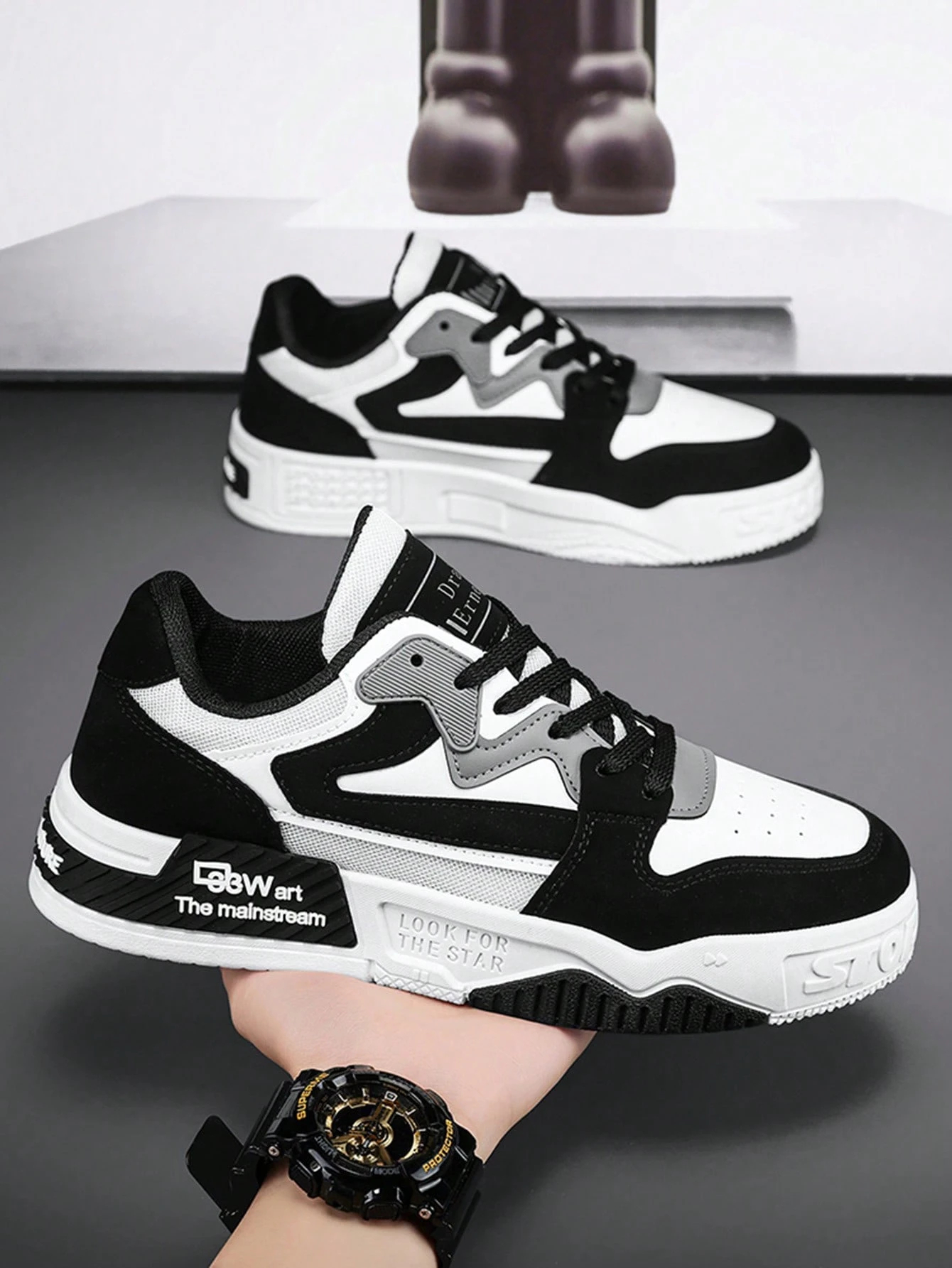 Make a statement without sacrificing comfort. These low-top sneakers feature a classic monochrome palette that goes with everything in your closet. Designed with a cushioned midsole for all-day support and a perforated toe box for maximum airflow, they keep you feeling as cool as you look. Whether you’re hitting the gym or the city streets, these lightweight kicks are your new daily essential.