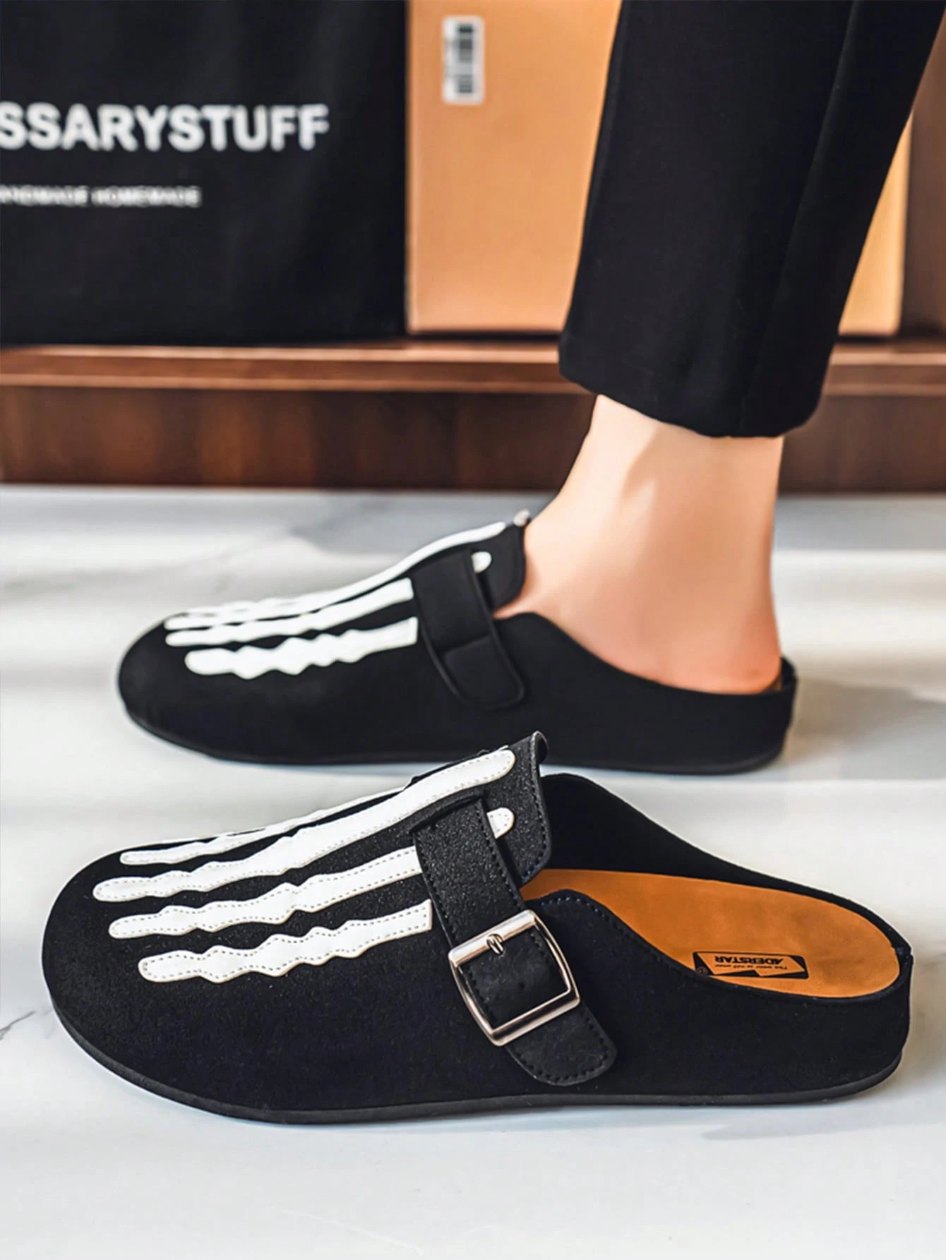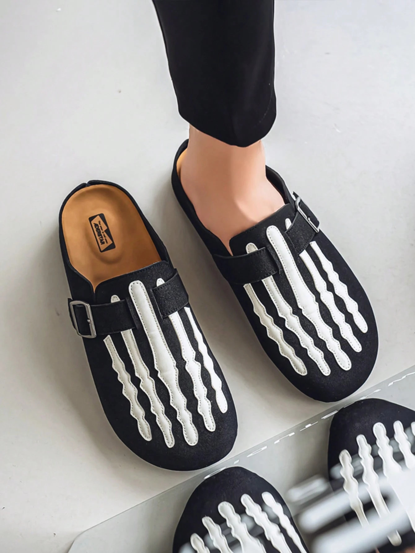 Step into the extraordinary with our Skeleton Graphic Clogs. Crafted with a premium suede-like upper and a rugged outsole, these shoes are as durable as they are eye-catching. The monochrome black and white palette ensures they pair perfectly with any wardrobe, while the breathable open-back design keeps your feet comfortable all day long. Whether you’re relaxing at home or hitting the city streets, these clogs bring an undeniable edge to your every step.