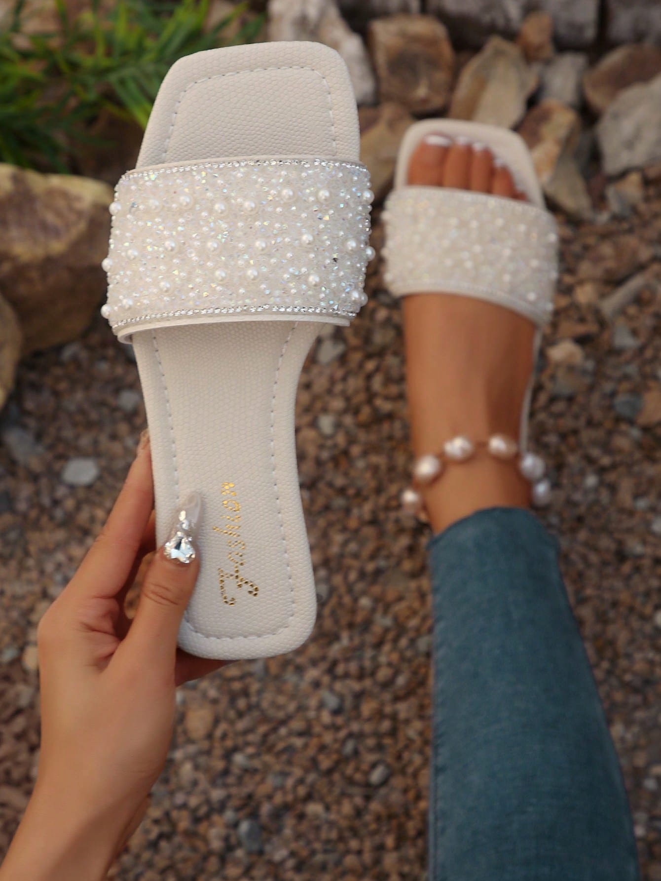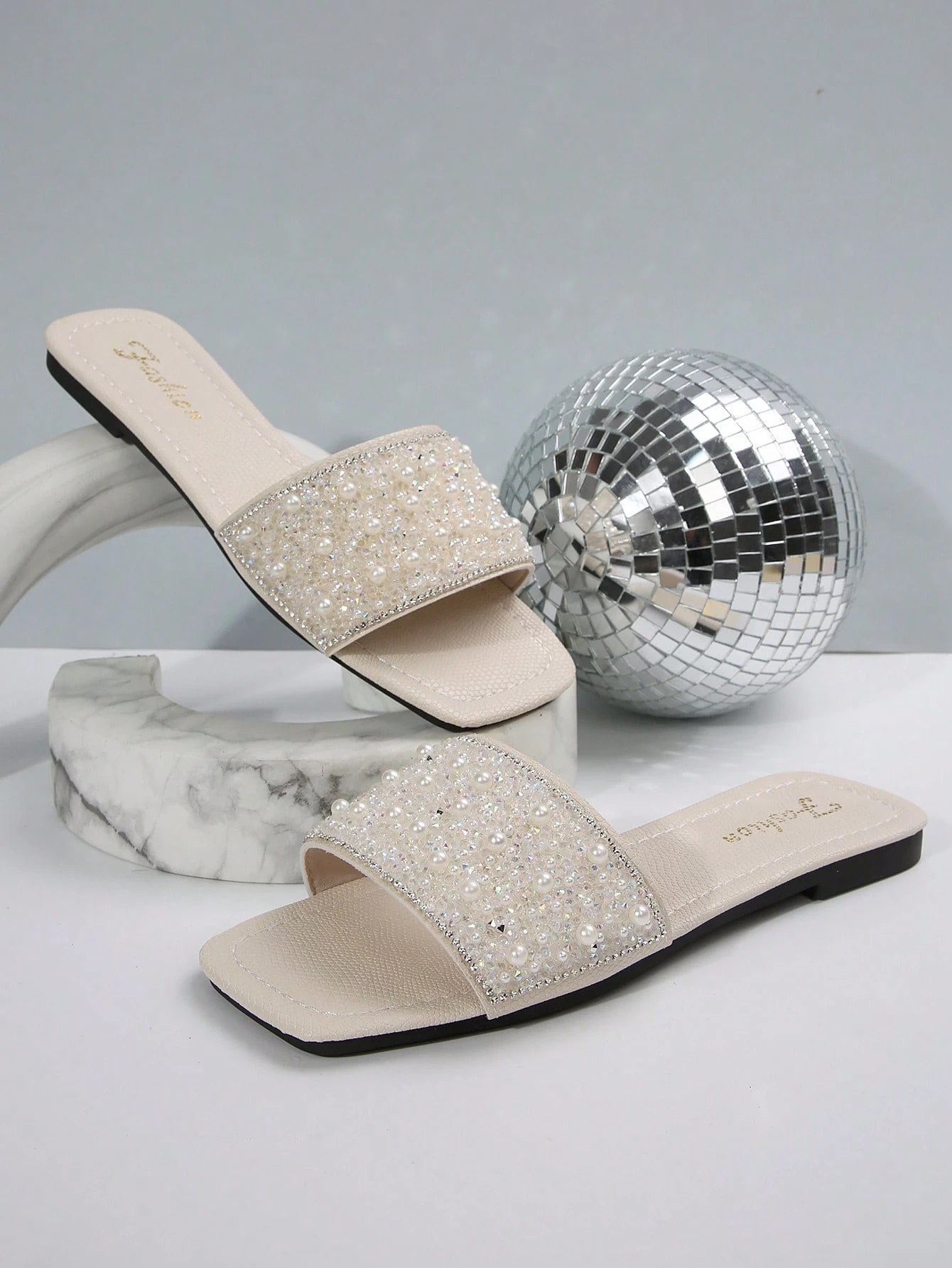 Women Student Sandals Slip-On Flats Summer New Silver Square