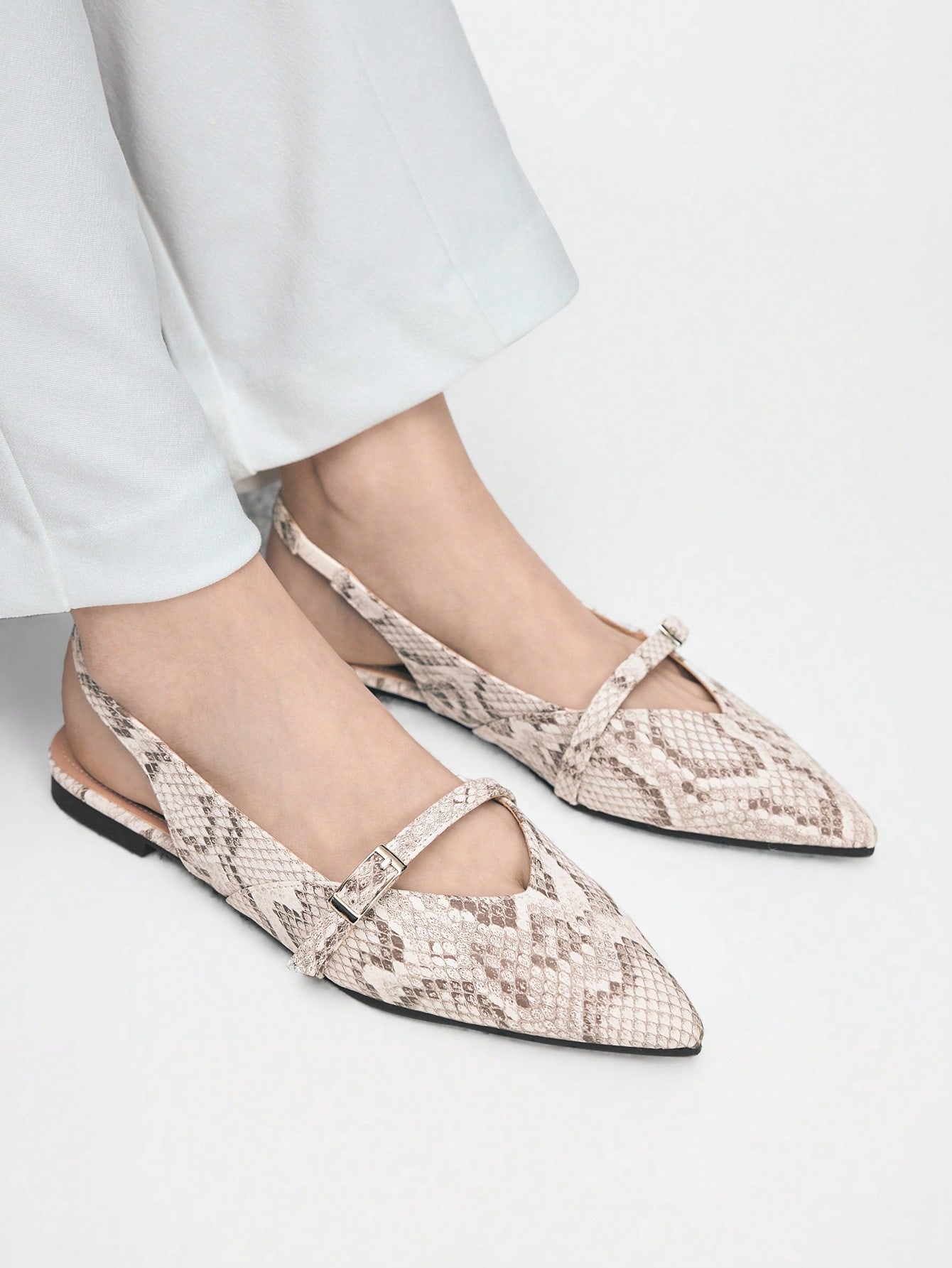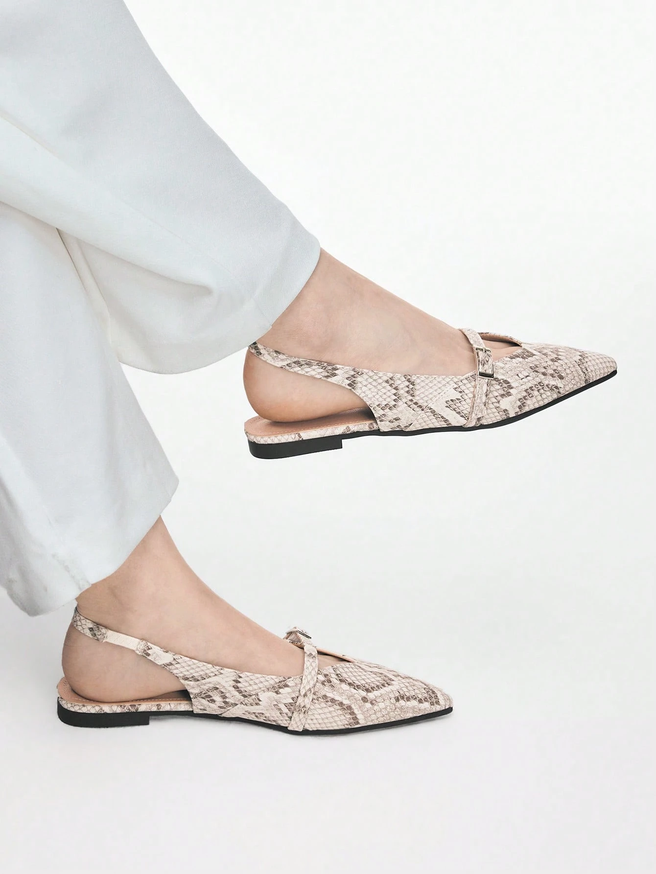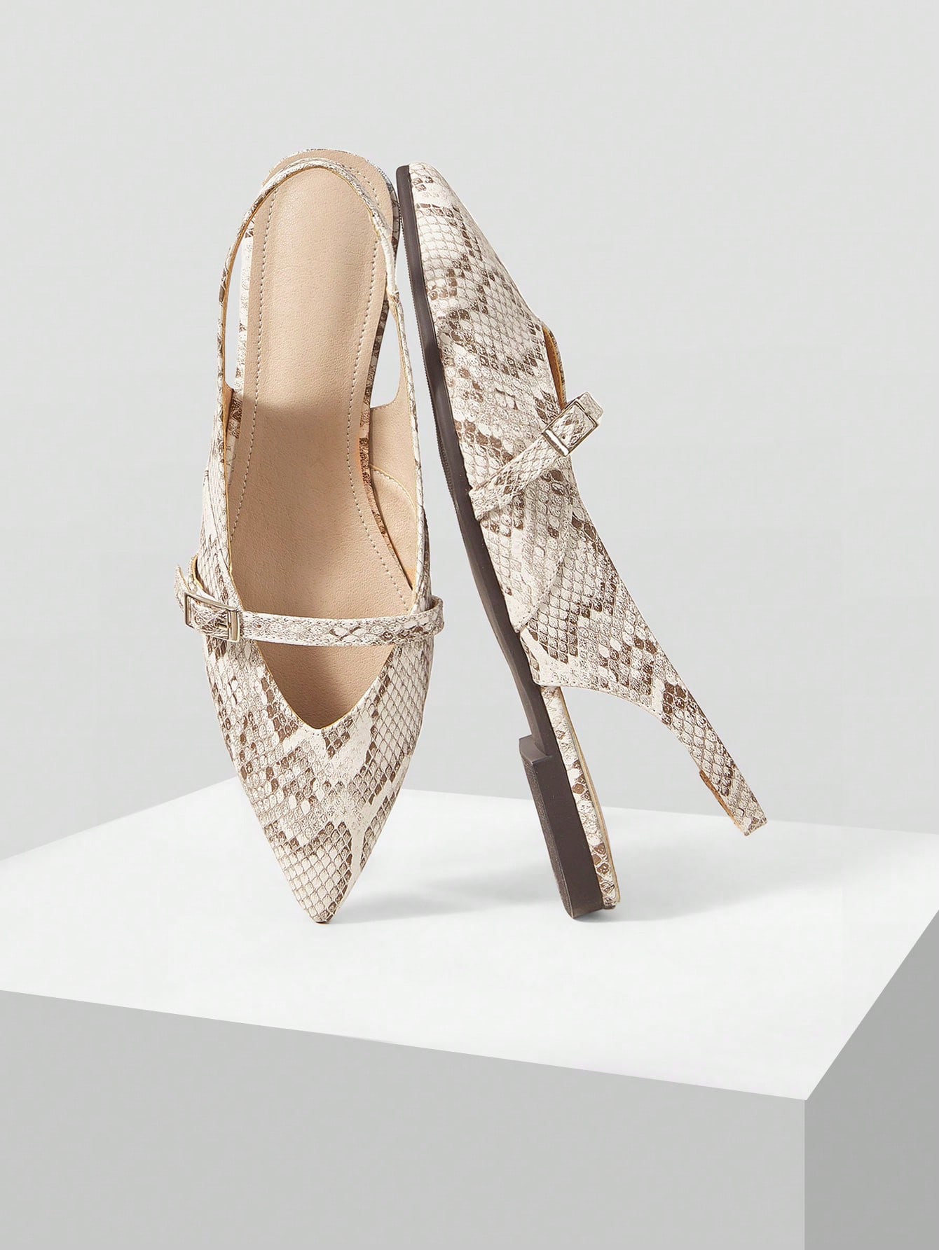 Women’s Fashion Metal Buckle Pointed Flat Shoes
